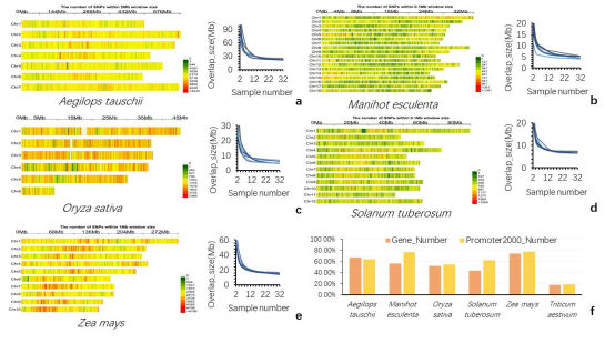 与育种芯片相比,Hyper-seq技术能检测出更多的标记。通过Hyper-seq技术,在玉米、马铃薯、节节麦、木薯、水稻、小麦中检测到的分子标记数量远远高于利用育种芯片检测出的分子标记数量,而且分子标记具有覆盖均一性等优势。
