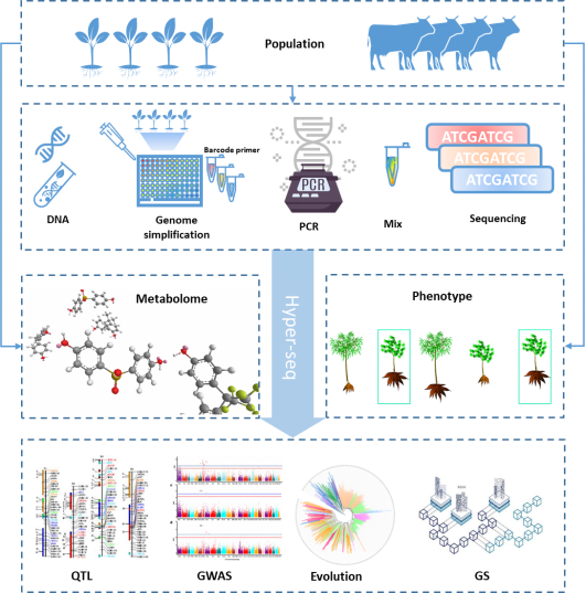 Hyper-seq适用于各物种(包括复杂大基因组)的重测序或简化测序,适用于作物遗传背景筛选、遗传图谱构建、全基因组关联分析、目标关键基因或新候选基因定位、品种鉴定、基因组选择育种、生物安全防控的分子检测等。随着DNA测序成本的进一步降低,以及简捷、快速基因分型平台的开发,Hyper-seq技术将使更多的全球非模式作物育种者受益。