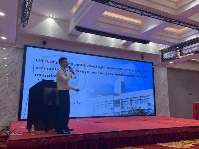 近日,热带水果品质发育调控科技创新团队钱敏杰副教授在杭州举办的“第三届丝绸之路沿线国家果树国际会议”(The III International Symposium on Fruit Culture along Silk Road Countries)做题为‘Effect of pre- and post-harvest light treatments on the flavonoids accumulation in mango peel and the involvement of WRKY transcription factor’的口头报告。
