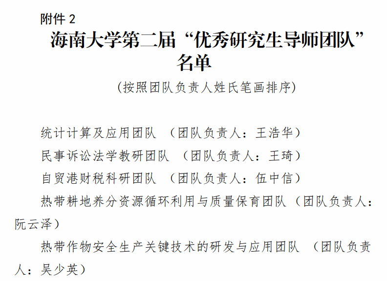 2、热带耕地养分资源循环利用与质量保育团队和热带作物安全生产关键技术研发与应用团队均被评为402永利集团官网入口第二届“优秀研究生导师团队”