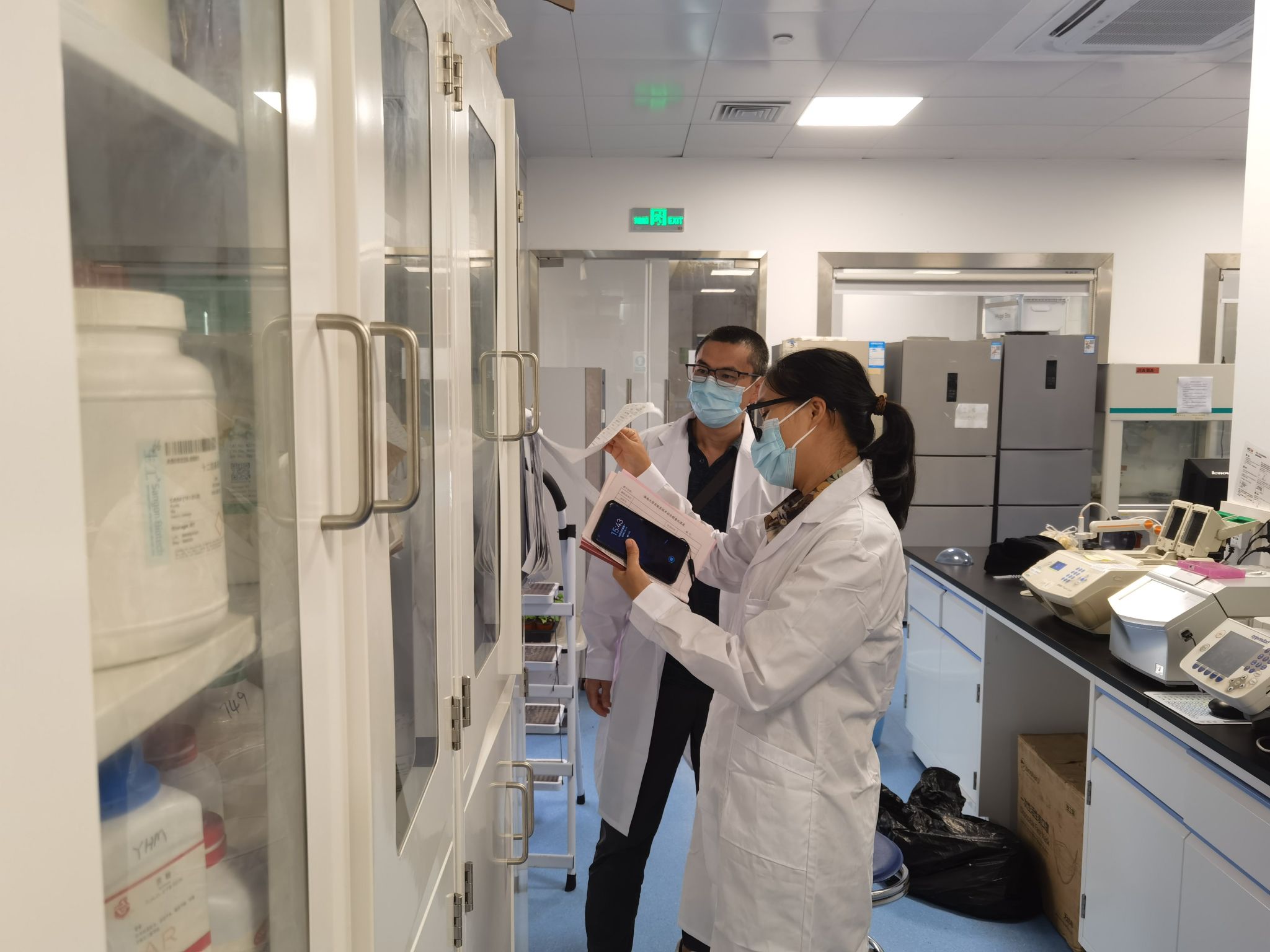 此次检查从化学试剂、危险废弃物排放、仪器设备安全、消防安全等方面开展,重点关注危化品存放,危废处理。大部分实验室管理符合规范要求,但仍存在危化品未分类存放,危废无标识且不及时清理,插排放置地上,气瓶无状态标识牌等现象,已当场要求相关人员立行整改。