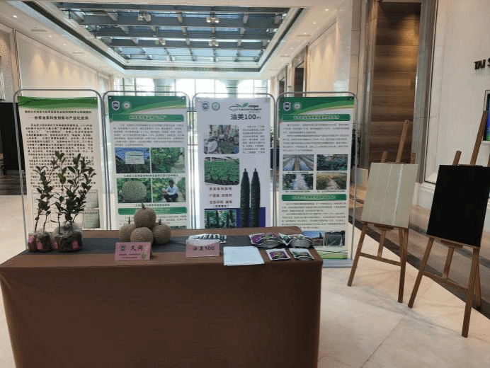 部分团队,对相关成果进行展示,其中402永利集团官网入口也设置了“久网”哈密瓜,“油美100”青瓜,可降解地膜,油茶的相关成果展示。