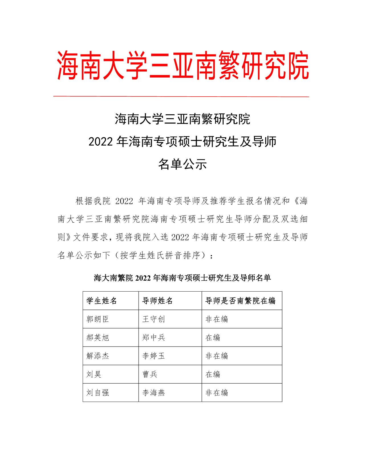 402永利集团官网入口三亚南繁研究院海南专项硕士研究生及导师名单公示