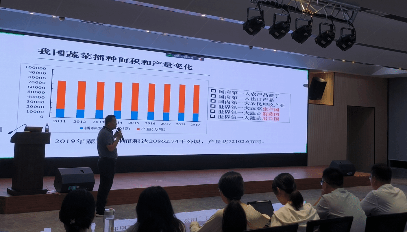 杨衍研究员以“我国蔬菜产销现状战略思考与海南实践”为主题,主要讲授了热带蔬菜产业的发展概况,针对海南省蔬菜卡脖子难题,从新品种选育、栽培技术研发方向提出解决问题的方案和措施。
