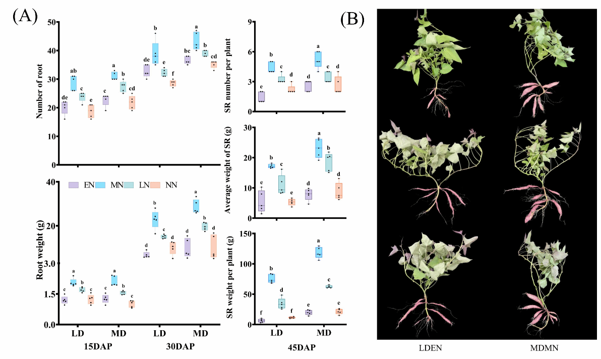 图1氮素水平和种植密度对甘薯贮藏根形成的调控效应