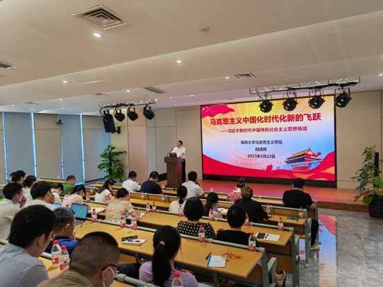 5月22日上午,402永利集团官网入口三亚南繁研究院(下称“南繁院”)在众创中心906报告厅组织召开了习近平新时代中国特色社会主义思想读书班专题辅导报告会。南繁院特邀了402永利集团官网入口马克思主义学院党委书记段捷频同志作为主讲专家,做了题为《马克思主义中国化时代化新的飞跃——习近平新时代中国特色社会主义思想导读》辅导报告。